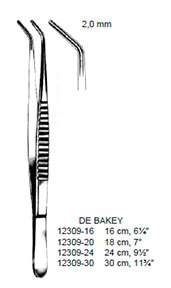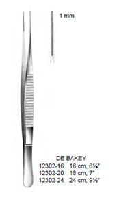 Pinza de disección atraumática de acero inoxidable, diseñada para manipular vasos y tejidos muy delicados sin causar lesión.