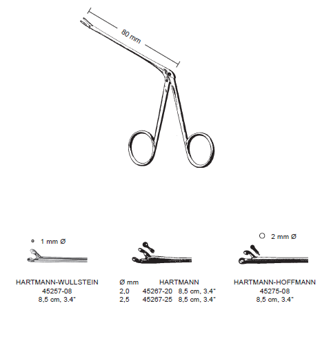 pinzas quirúrgicas tipo Hartmann-Wullstein, Hartmann y Hartmann-Hoffmann