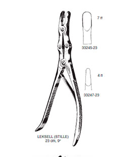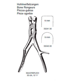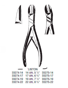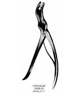 Instrumento quirúrgico robusto utilizado en ortopedia y cirugía general para el corte preciso de hueso compacto y esponjoso. Su diseño cuenta con mandíbulas fuertes y afiladas, que permiten aplicar gran fuerza de corte con mínima fatiga para el cirujano.