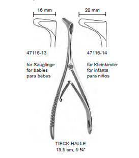 Pinza quirúrgica utilizada principalmente en otorrinolaringología, para la extracción de pólipos y tejidos nasales.